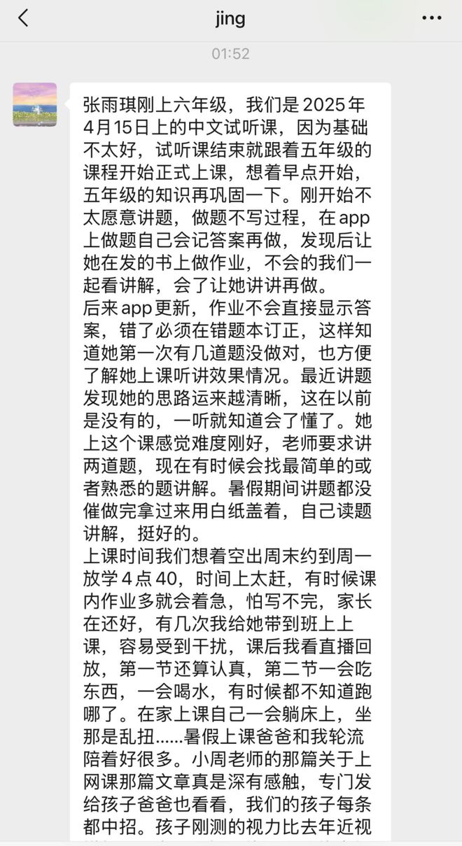 有对比其他网课,觉得老师从授课到服务,都更好的。当然,家长反馈的很详细,也会有不满的地方,但基本瑕不掩瑜。