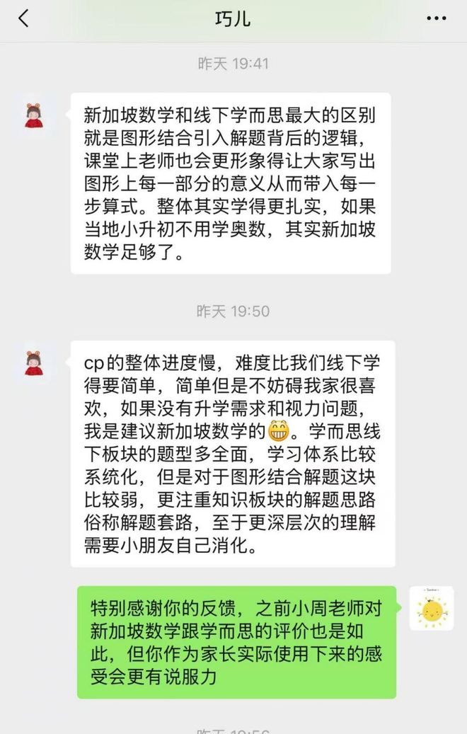 这两个反馈,都是孩子自己觉得对自己帮助比较大,家长才持续选择的。有的时候并不是校内讲的更好还是新加坡数学的讲法更好,而是不同,给孩子就是启发。