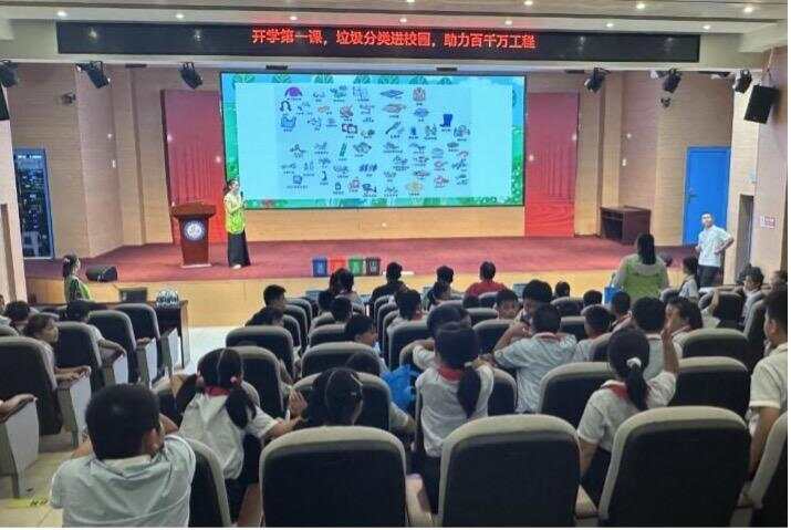 在云浮,当地多所学校以“垃圾分类新时尚 绿色环保校园行”为主题开展活动,通过知识宣讲、宣读垃圾分类倡议书、分类小游戏等环节,增加活动趣味性。