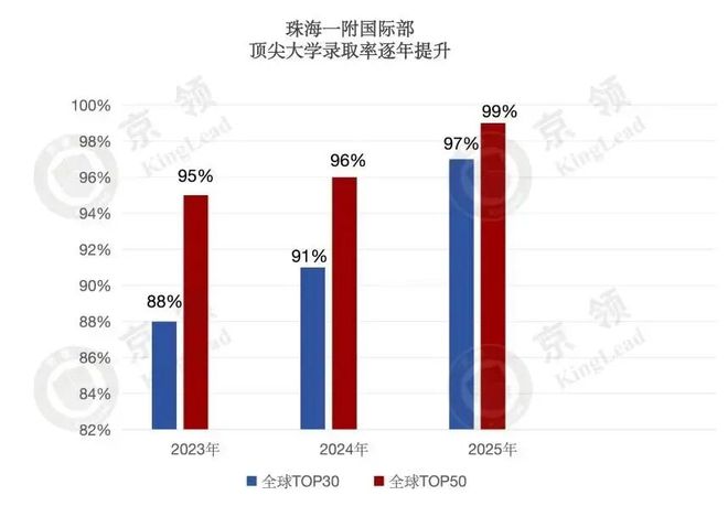 作为珠海市一级学校,珠海一附不仅在学术方面始终保持着“第一”的水准,在升学成绩方面更是遥遥领先。2023-2025年间,珠海一附国际部顶尖大学录取率逐年提升,在2025年录取季也获得1枚牛津大学录取及3枚剑桥大学录取,实现珠海市本土学校连续六年牛剑双录取的佳绩。