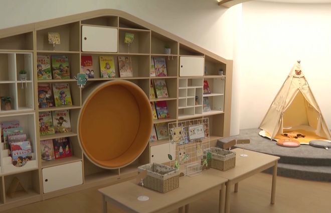 环形内走廊巧妙串联起幼儿活动室、专用教室和多功能区域,室内外空间相互渗透,为孩子们提供了丰富多元的体验场所。金馨幼儿园园长谢仙玲介绍:“我们这里一共有五间活动室。三到六岁的孩子充满想象力和创造力,我们特意打造了一间创意室,里面提供了丰富多彩、多元的环境和材料,供孩子们充分发挥想象,尽情创意。”