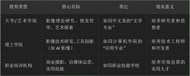 新增:视觉批判(如何识破AI换脸、假新闻图片?)、图像伦理(网络暴力、隐私边界在哪?)、视觉文化研究(网红审美、表情包为何流行?)、跨媒介叙事(如何用影像讲好故事?)等。摄影教育的目标是帮助学生理解图像的力量、陷阱以及如何利用它进行有效的思考和表达。