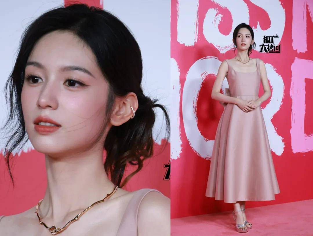 周也穿了一条粉色方领长裙和银色高跟鞋,老实说裙子和高跟鞋组合在一起有点像伴娘服。不过好在她的美貌能打,这次的妆容也比较显气色,慵懒的盘发更是营造出一种“不怎么使劲就很美”的氛围感,总体来说妆发出彩很加分。