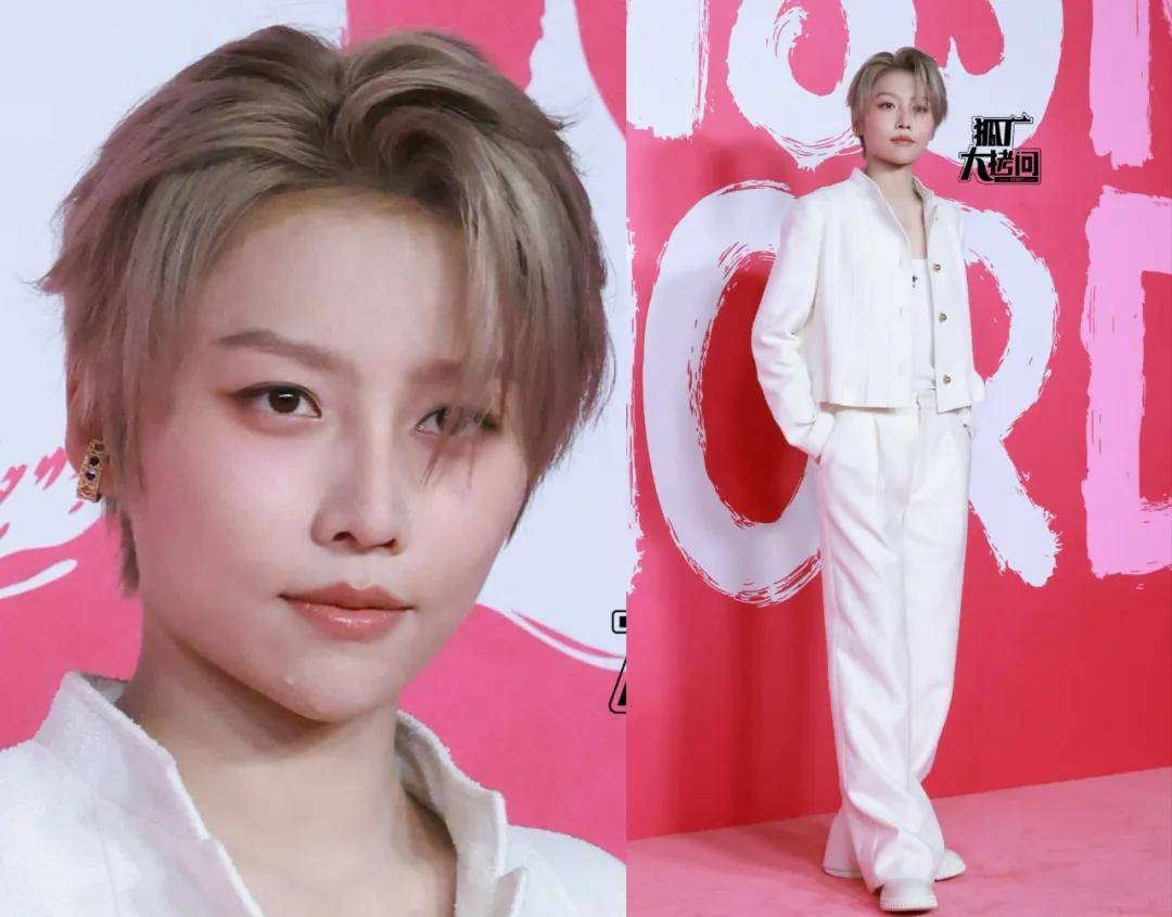 刘雨昕穿的是白色短夹克套装,下巴的几颗痘痘在高清镜头下比较明显,不过并不影响整体造型的帅气。